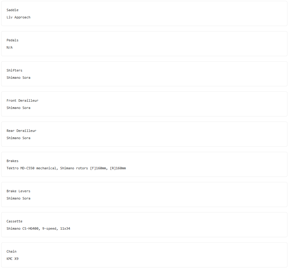 The lightweight ALUXX frame features the latest women’s endurance geometry with an Advanced-Grade Composite fork and D-Fuse seatpost to